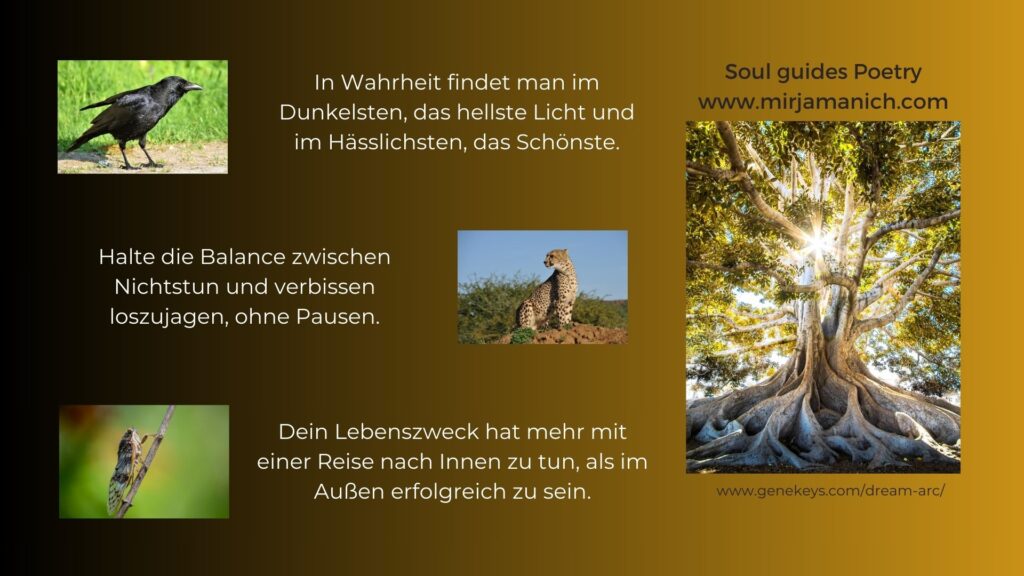 Dein eigenes Wesen, dein Leben, deine momentane Situation anzunehmen, ist deine Stärke. Dies beinhaltet sowohl Freude als auch Schmerz. Deinen Verstand hast du auf das Abstellgleis gestellt. Er diktiert nicht mehr dein Leben, sondern kommt nur noch zum Einsatz, wenn dein Herz ihn ruft. Dadurch kommt dein Lebensinn, deine Bestimmung, sowie deine Kreativität tief aus dir heraus.