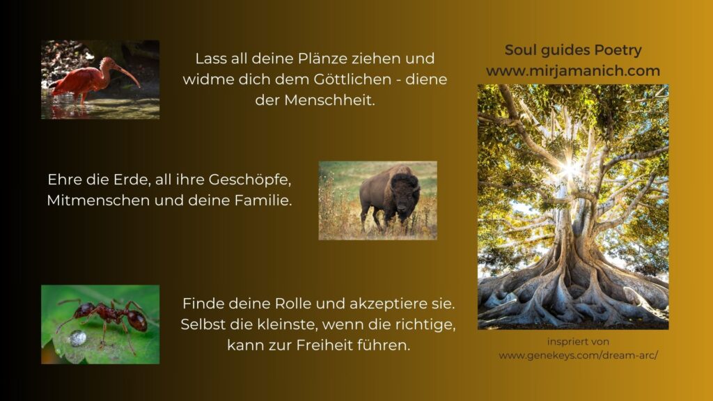 Ruhig und leicht geht er seine Wege, meistert Herausforderungen und ist im völligen Vertrauen mit der Choreografie des Kosmos. Für die Gruppe bedeutet das ein Learning in Verbindlichkeit, Empathie, geduld und Vertrauen. Dafür entsteht ein Inspirationsfeuer der Kreativität und Ermächtigung die wie eine heilende Welle, verschiedene Chemien miteinander ausbalanciert.
