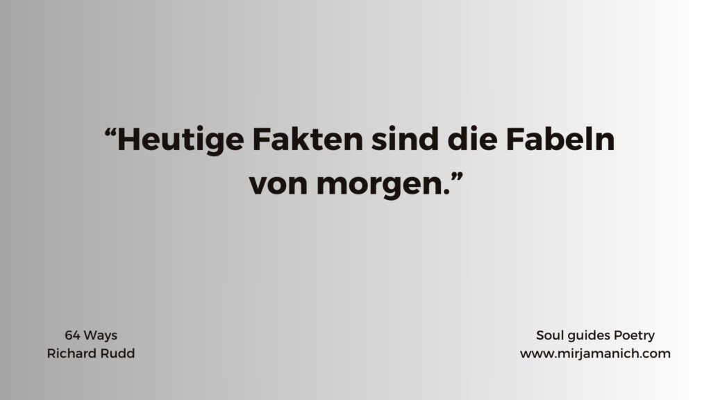 Du versuchst mit Fakten, mit der Wissenschaft die Geheimnisse des Lebens zu erklären. Dabei sind Fakten lediglich die neuen Fabeln.
