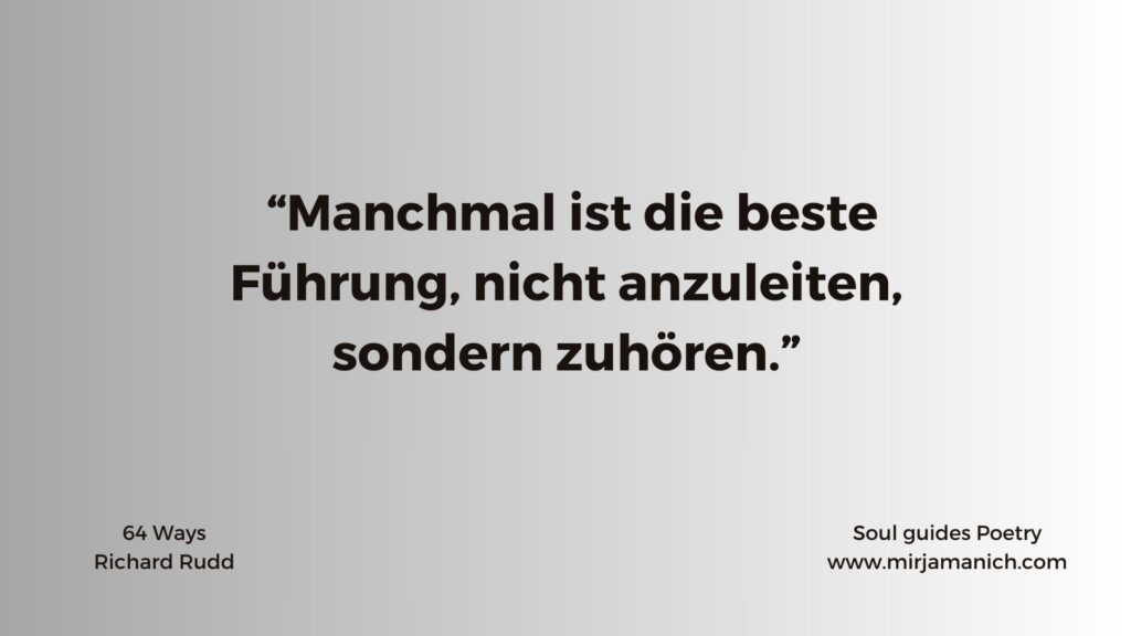 Denn das, ist das Ziel eines wahrhaftigen Führers. Er ermächtigt die Menschen in ihre Kraft zu kommen, hält ihnen in ihren Entwicklungsprozessen den Raum. Er freut sich an ihre Erfolge, vertraut voll und ganz dem Leben und greift in all das, so wenig wie möglich ein.